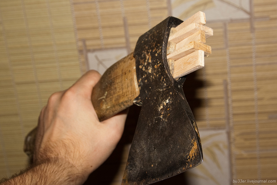 Что нужно сделать, чтобы топор надёжно закрепился на топорище навсегда