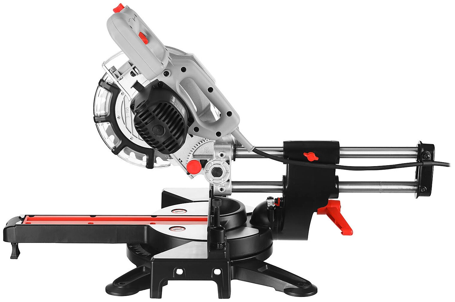 Пила с электродвигателем крепится на каретке, которая обеспечивает перемещение пилы параллельно над плоскостью стола.