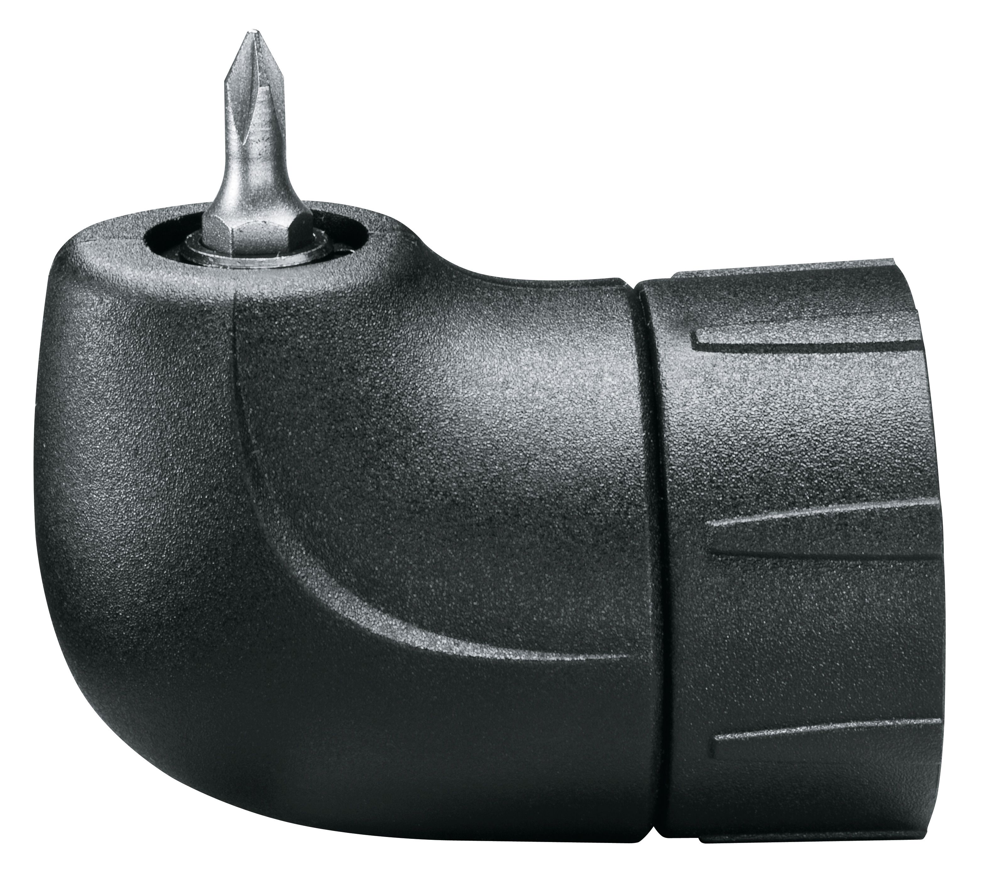 Угловая насадка – это механическое приспособление для закручивания/откручивание метизов в местах, куда шуруповёрт не достанет. С ее помощью меняется направление оси вращения выходного шпинделя. Угловой переходник позволяет держать инструмент перпендикулярно к стене, а закручивать метизы справа или слева, а также под углом.