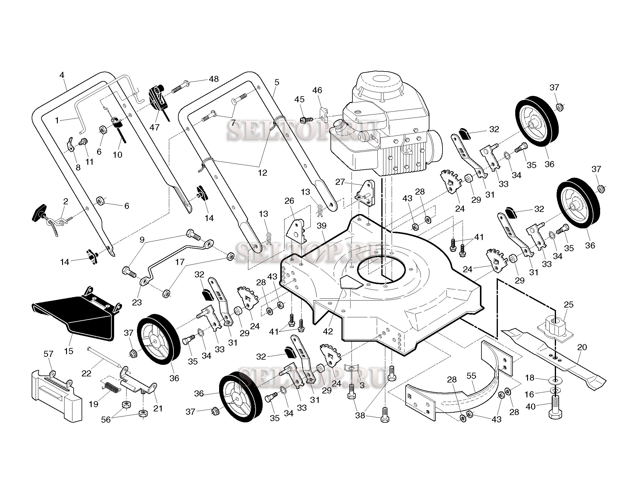 Косилка с задним расположением двигателя, рулевое колесо (10 000 квадратных футов травы до двух акров; варианты для тяжелых условий эксплуатации до четырех акров): Типичные размеры двигателя находятся в диапазоне 10.От 5 до 13,5 лошадиных сил (л.с.), у некоторых моделей до 21,5 л.с. Размеры деки обычно составляют от 30 до 33 дюймов, а для тяжелых моделей – до 54 дюймов. Широкие деки позволяют скашивать быстрее, но стоят дороже.
