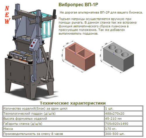 Производство самодельного вибропресса позволяет сэкономить немало средств и времени.