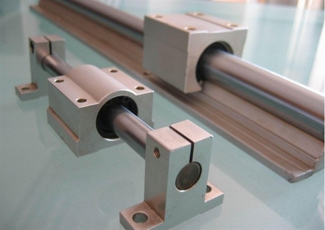 Данный тип направляющих обеспечивает отсутствие прогиба при движении каретки. Эта функция связана с применением специального крепления, фиксирующего направляющую на станине. Шариковые втулки, помещенные в алюминиевый цилиндр, удерживаются с помощью пружинных колец. Вес направляющих достаточно низкий из-за применения алюминия. При работе наблюдаются невысокие потери при трении, отмечается и высокая точность обработки при плавном движении.