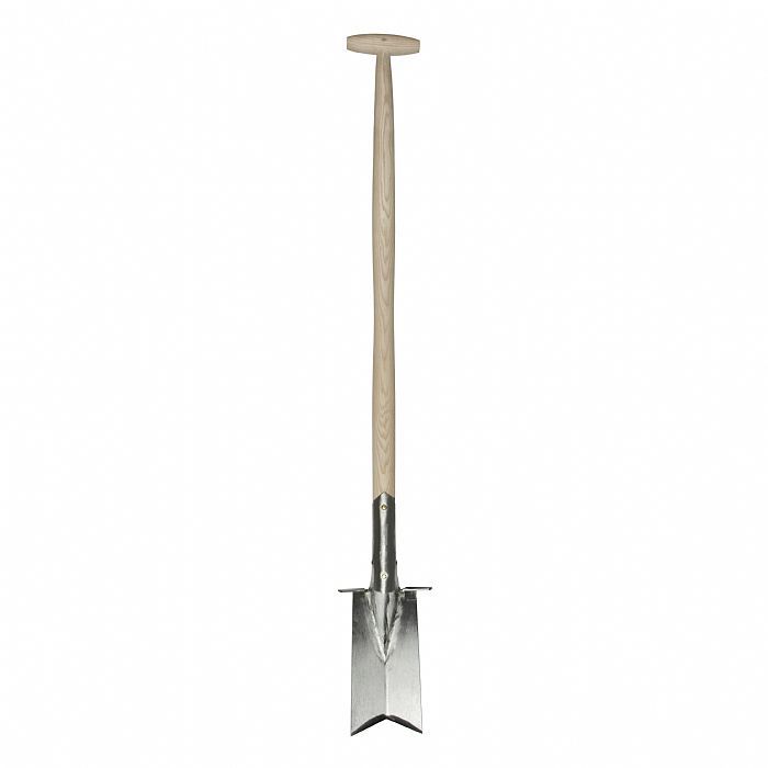Это вариант штыковой лопаты с совком прямоугольной формы, нижняя часть закругленная. Такая лопата подходит для работы в узких местах и ограниченных пространствах. Небольшой вес инструмента снижает нагрузку на пользователя. С бордюрной лопатой можно быстро сформировать грядку с ровными краями или аккуратно оформить клумбу.