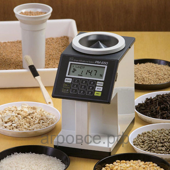 Подобные устройства работают по игольчатому принципу. У них имеется два длинных щупа, которые необходимо полностью погрузить в материал. Получение данных осуществляется мгновенно. Эти приборы также можно калибровать под специфику тестируемых материалов. Кроме зерна их используют для проверки муки, сахара, соли и т.д. Также бывают модели, в которые материал погружается в специальную емкость.