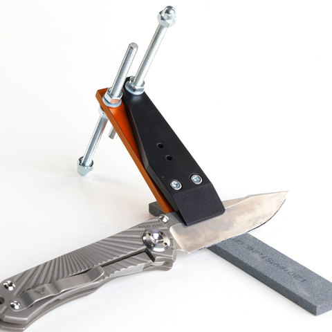 Эти приспособления крепятся к ножу и помогают удерживать его под правильным углом. Или вы можете держать нож в руке и расположить его так, чтобы лезвие образовывало угол 20 градусов с камнем.