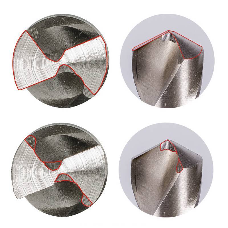 Ступенчатое сверло с прямой канавкой называется ступенчатым сверлом с раззенковкой, а ступенчатое сверло с изогнутой канавкой называется ступенчатым сверлом с зенковкой. Канавка или профиль паза служит системой каналов для сбора и удаления стружки во время сверления.