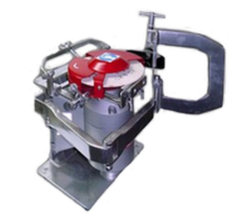 Вторая операция – зафиксировать конек в “лапе”. Лезвие конька удерживается винтовой струбциной. Конек подается в струбцину с правой стороны носком вперед. Лезвие конька зажимается ближе к носку. Лапа обеспечивает параллельность лезвия конька относительно плоскости заточного круга, а так же берет на себя вес конька, облегчая заточку.