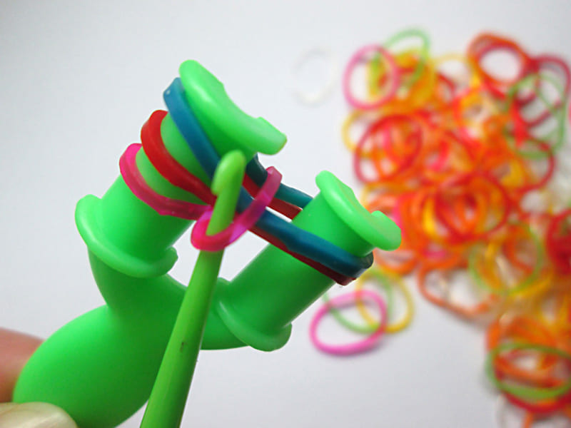 Например, выполнение плетения на рогатке Rainbow Loom. В данном способе нет ничего сложного. Пользоваться рогаткой очень удобно. Со временем и с получением опыта, процесс работы с ней значительно упростится.