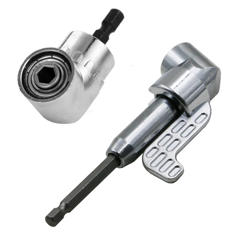 Насадка для шуруповерта, которая позволяет работать инструментом под углом 1050. Насадка-патрон изготовлена из хромованадиевой стали, с габаритными размерами 65*32 мм. Устройство представляет собой механизм на подшипниках, передающие вращательные движения шуруповерта на посадочное отверстие под шестигранную биту (6 мм). На посадочном месте имеется мощный магнит, который не позволит бите выпасть.