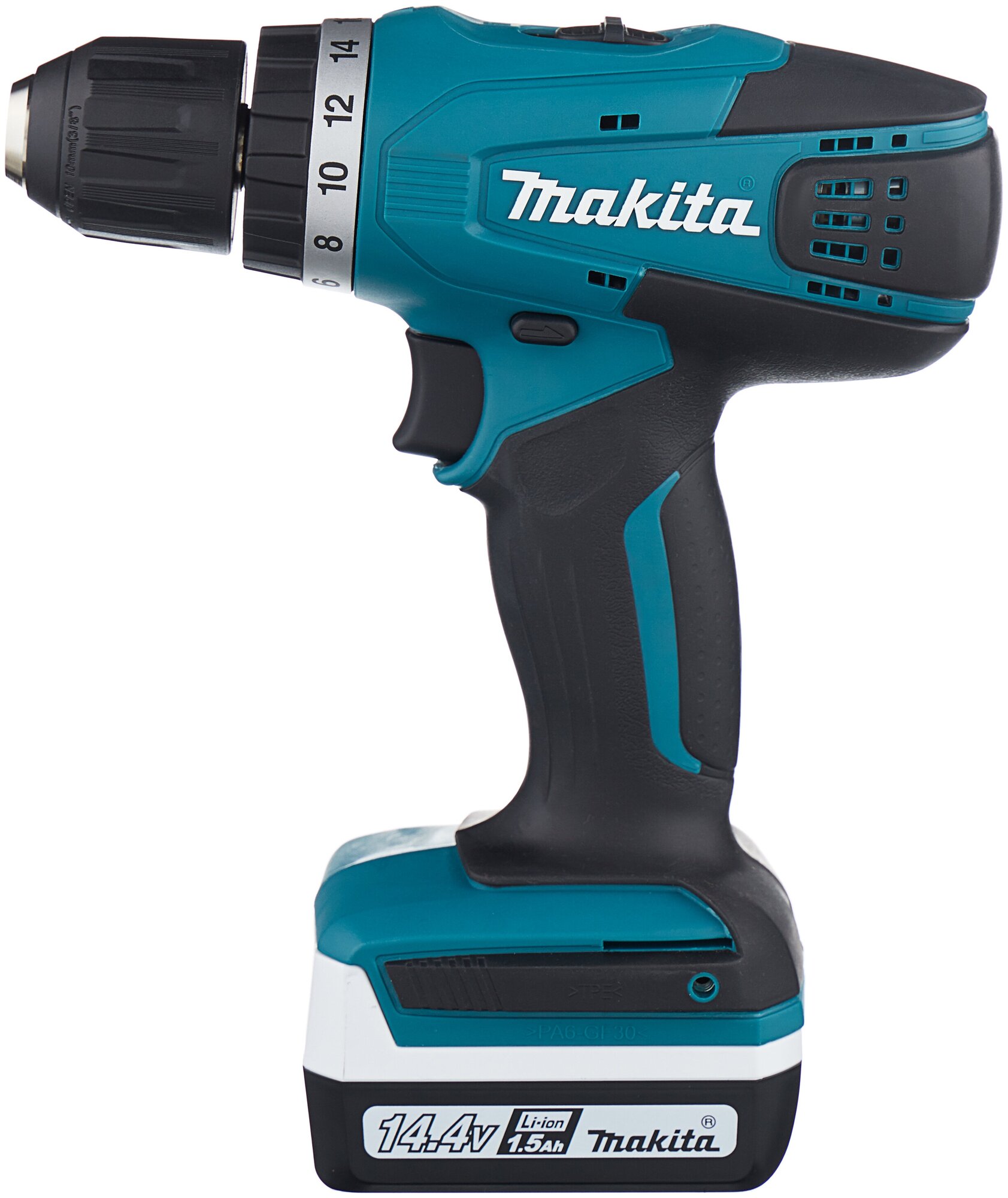 Для питания инструмента используется энергия, получаемая от 18-вольтового литий-ионного аккумулятора. Автономность шуруповерта позволяет использовать его в любых условиях, ведь подключение к сети не требуется. В комплект поставки входят 2 аккумулятора: используя один, второй вы сможете одновременно заряжать. Есть в комплекте и зарядное устройство.Аккумуляторная дрель-шуруповерт Makita DDF485RF Li-Ion 3 А·ч 18 В