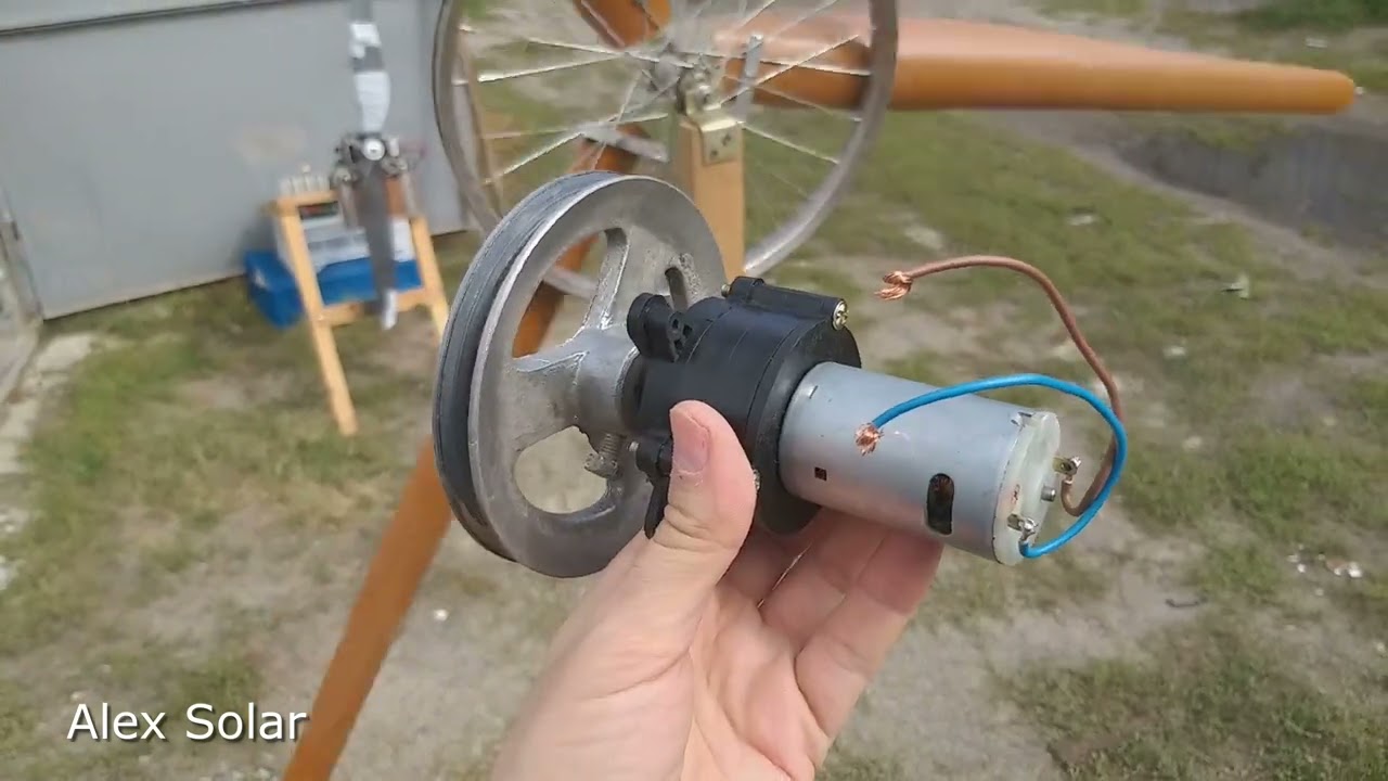 Один оборот пропеллера должен равняться 4-5 оборотам на валу генераторного узла. Однако эти параметры подбираются индивидуально, исходя из мощности и особенностей вашего генератора и лопастного узла. В качестве редуктора может выступать деталь от болгарки или система ремней и роликов.