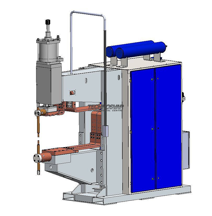 Машины для контактной сварки :Аппарат для контактной сварки включает в себя трансформатор, подходящие электроды для подачи тока к сварному шву и устройство для регулирования механического давления, и, наконец, средства для управления продолжительностью протекания сварочного тока. Механическое давление может создаваться посредством рычагов и муфты электродвигателем или сжатым воздухом.Величина требуемого давления зависит от типа работы и может варьироваться от нескольких кг для тонких листов или проволоки до тонны или более для тяжелых работ.