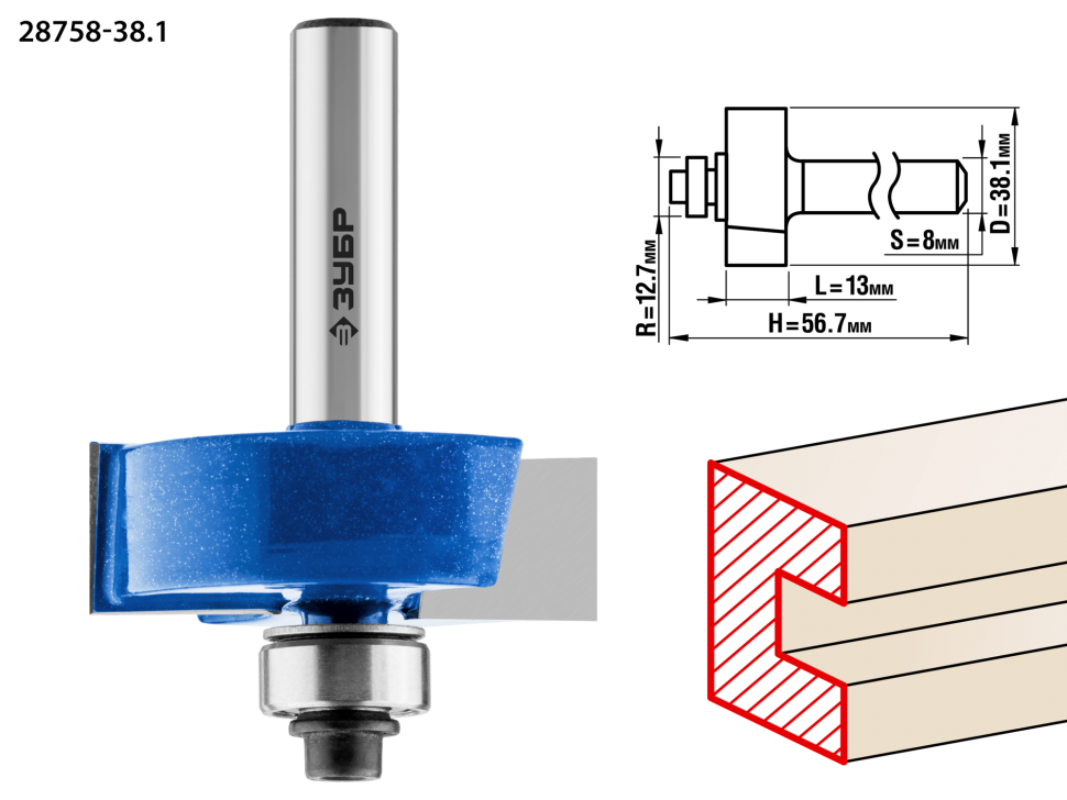 Вид устройства: Фреза галтельная Особенности: 2 лезвия Размер: ф38.1мм,R12.715.8мм Диаметр хвостовика, мм: 8 ELITECH 1820.091200