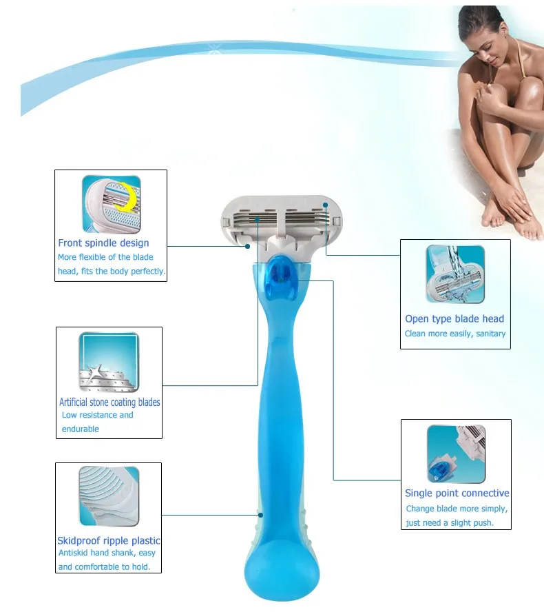 Сменные картриджи содержат до шести лезвий из нержавеющей стали.