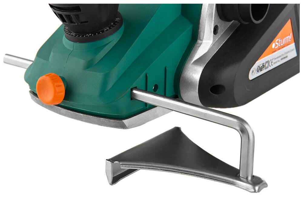 - Хорошая производительность возможна только при качественной эргономике, что достигается удобными рукоятями инструмента. У рубанка их две: первая, предназначена для регулировки глубины строгания и удержания инструмента, а вторая направляющая рукоять выполняет роль опоры рук для подачи рубанка, а так же выполняет задачи пуска и регулировки оборотов двигателя.